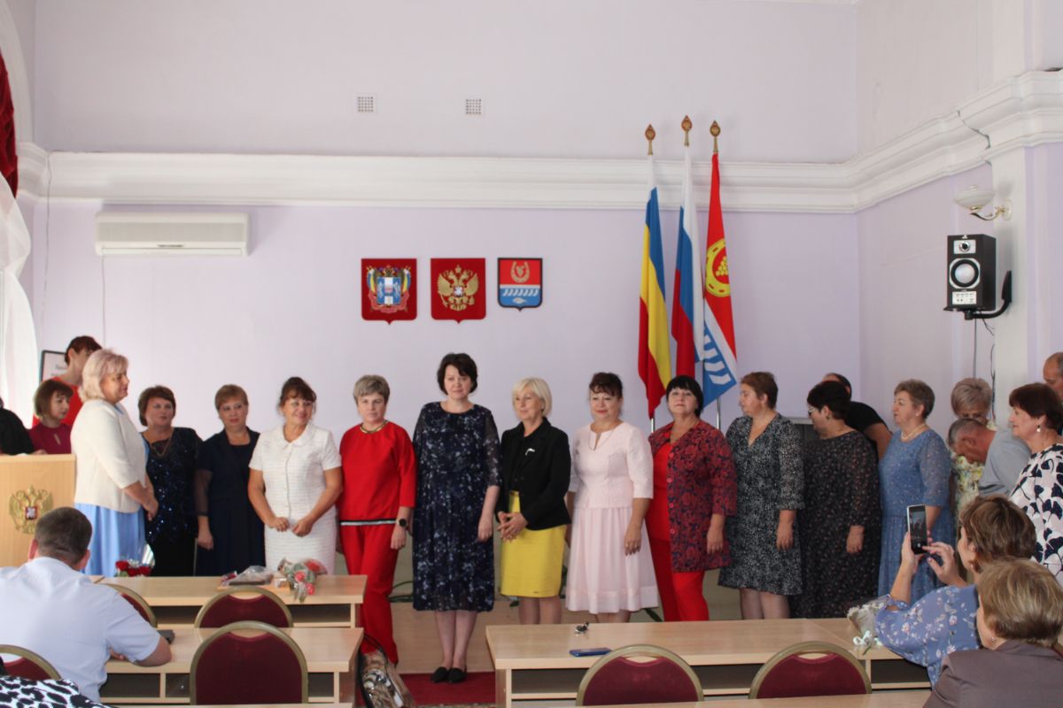 Поздравили работников образования с профессиональными праздниками и. о. главы Администрации Цимлянского района Елена Николаевна Ночевкина, заместитель главы Администрации Цимлянского района по социальной сфере Светлана Николаевна Кузина, заведующий отделом образования Администрации района Иван Викторович Антипов и руководитель районной профсоюзной организации Раиса Петровна Гарцунова.